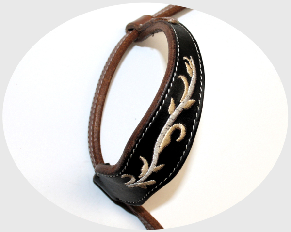 Model S-2545 kombinuje klasickú hnedú kožu s kontrastnými zdobenými aplikáciami a výraznou prackou. Pôsobí reprezentatívne a dodáva koňovi elegantný, upravený vzhľad vhodný do show arény.